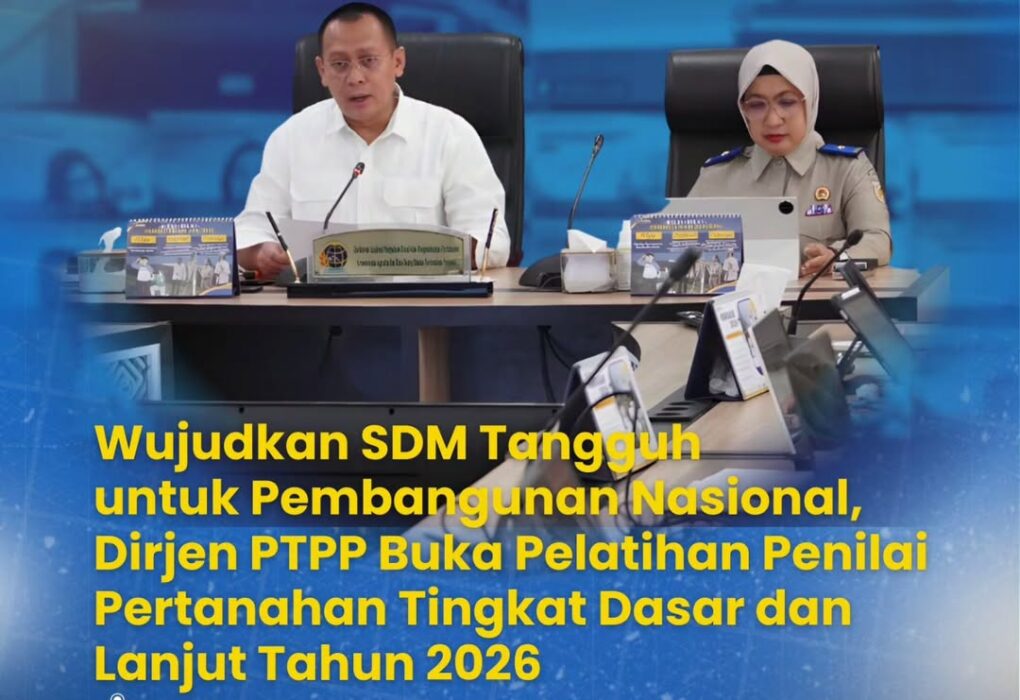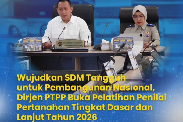 Jakarta – Direktur Jenderal Pengadaan Tanah dan Pengembangan Pertanahan (Dirjen PTPP), Arief Muliawan, dengan didampingi oleh Direktur Penilaian Tanah dan Ekonomi Pertanahan (PTEP), Yuliana, secara resmi membuka Pelatihan Penilai Pertanahan Tingkat Dasar Angkatan I serta Tingkat Lanjut Angkatan I dan II Tahun 2026. Pelatihan strategis yang diselenggarakan oleh Badan Pengembangan Sumber Daya Manusia (BPSDM) Kementerian…