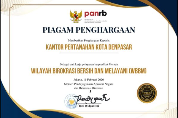 Bukti Pelayanan Publik yang Bersih dan Akuntabel, Kantah Kota Denpasar Raih Predikat WBBM
