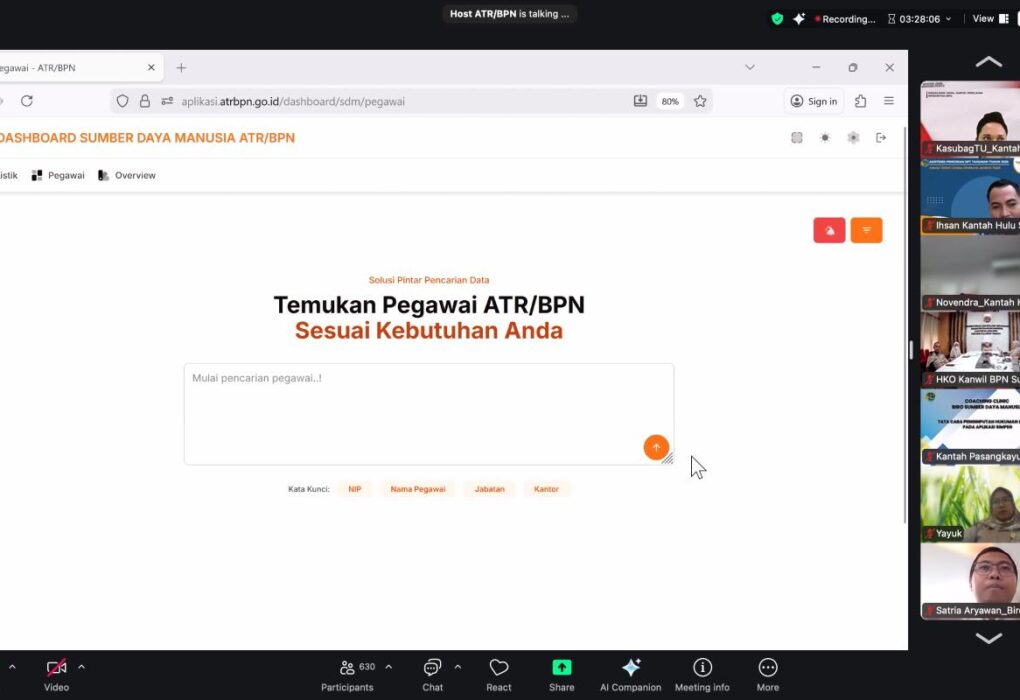 Jakarta – Kementerian Agraria dan Tata Ruang/Badan Pertanahan Nasional (ATR/BPN) tengah mengembangkan aplikasi Dashboard Sumber Daya Manusia (SDM) guna mendukung proses mutasi dan promosi pegawai agar lebih efektif dan efisien. Aplikasi yang dibangun oleh Pusat Data dan Informasi Pertanahan dan Tata Ruang (Pusdatin) bersama Biro SDM ini disiapkan sebagai instrumen pemetaan kompetensi dan pengisian jabatan…