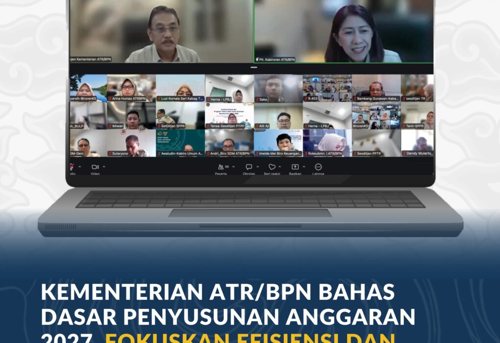 Jakarta – Kementerian Agraria dan Tata Ruang/Badan Pertanahan Nasional (ATR/BPN) tengah membahas Klasifikasi Rincian Output (KRO) dan Rincian Output (RO) sebagai dasar teknis penyusunan anggaran 2027 mendatang. Di tengah penyesuaian efisiensi dan gejolak geopolitik dunia, Kementerian ATR/BPN berupaya menyesuaikan perencanaan yang ada, dengan tetap memastikan masyarakat terlayani dengan baik. “Terkait pembahasan KRO dan RO, berkaitan…