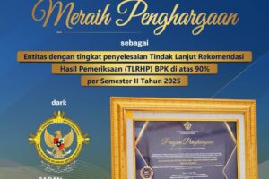 Jakarta – Kementerian Agraria dan Tata Ruang/Badan Pertanahan Nasional (ATR/BPN) kembali menorehkan prestasi dengan meraih penghargaan dari Badan Pemeriksa Keuangan Republik Indonesia. Penghargaan tersebut diberikan atas capaian tingkat penyelesaian Tindak Lanjut Rekomendasi Hasil Pemeriksaan (TLRHP) yang berhasil melampaui 90 persen pada Semester II Tahun 2025. Capaian ini merupakan bentuk komitmen Kementerian ATR/BPN dalam mewujudkan tata…