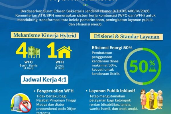 Jakarta – Sekretaris Jenderal (Sekjen) Kementerian Agraria dan Tata Ruang/Badan Pertanahan Nasional (ATR/BPN), Dalu Agung Darmawan, secara resmi membuka Forum Badan Komunikasi Hubungan Masyarakat (Bakohumas) pada Rabu (15/04/2026). Sejalan dengan digitalisasi yang dilakukan terhadap layanan pertanahan dan tata ruang, forum kali ini diselenggarakan sebagai wadah memperkuat pemahaman dan sinergi antarinstansi dalam mendukung implementasi layanan berbasis…
