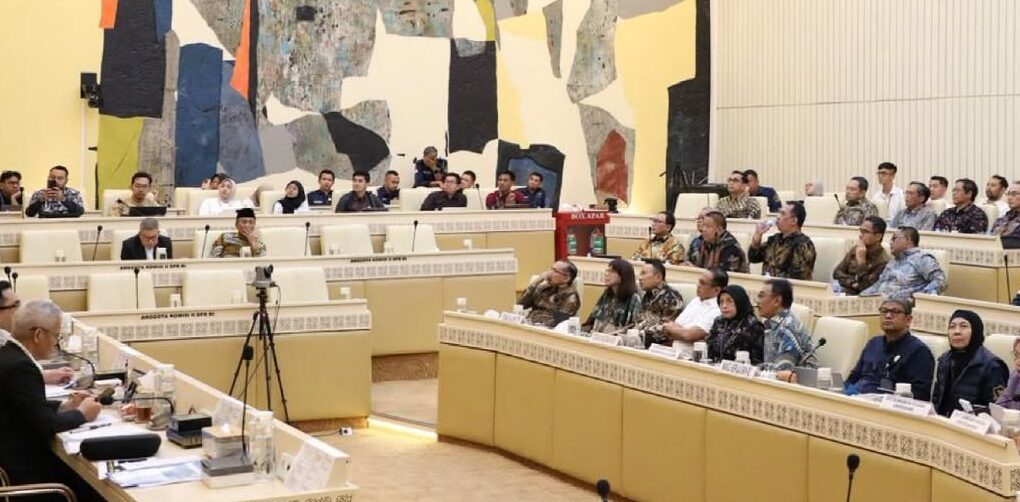 Direktur Jenderal Pengendalian dan Penertiban Tanah dan Ruang (Dirjen PPTR), Lampri, mendampingi Sekretaris Jenderal Kementerian ATR/BPN, Dalu Agung Darmawan, dalam Rapat Dengar Pendapat (RDP) bersama Komisi II DPR RI yang dipimpin Ketua Komisi II DPR RI, M. Rifqinizamy Karsayuda, pada Selasa, (14/4/2026) di Gedung Nusantara DPR RI