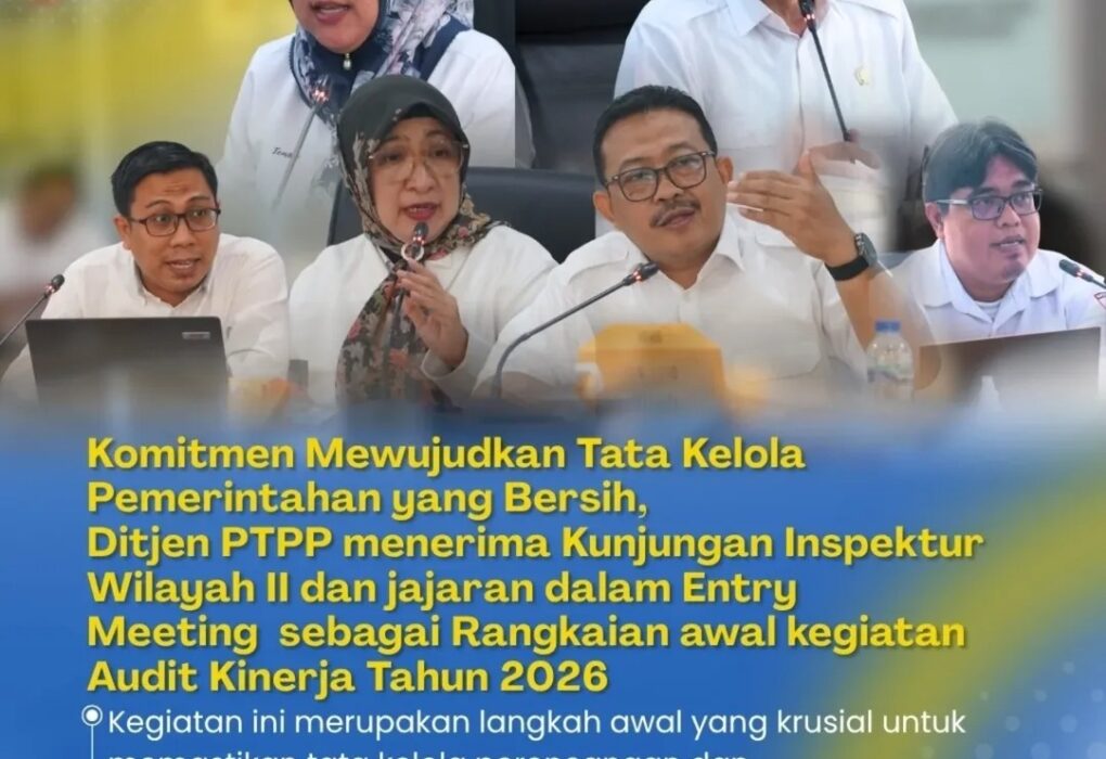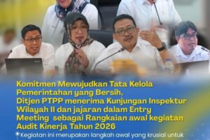 Jakarta, 15 April 2026 – Ditjen PTPP menerima Kunjungan Inspektur Wilayah II dan jajaran dalam Entry Meeting sebagai Rangkaian awal kegiatan Audit Kinerja Tahun 2026. Bertempat di Ruang Rapat 201, Kantor Ditjen PTPP, Jakarta Pusat. Rapat ini dibuka dan dipimpin langsung oleh Sekretaris Direktorat Jenderal Pengadaan Tanah dan Pengembangan Pertanahan, Tensa Nurdiyani. Agenda ini juga…