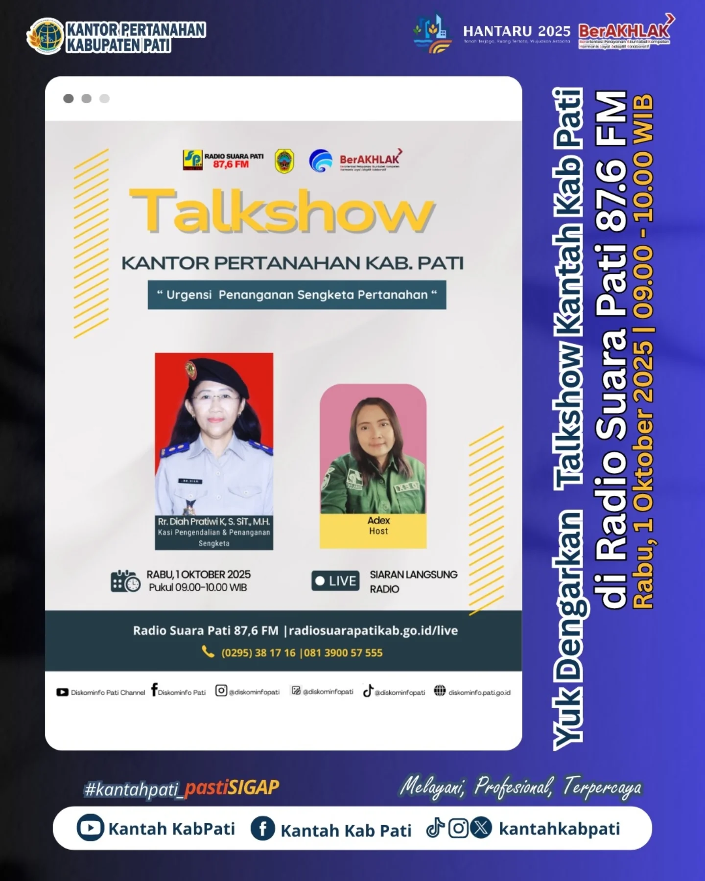Yuk Dengarkan Talkshow Spesial dari Kantor Pertanahan Kabupaten Pati di Radio Suara Pati 87.6 FM
